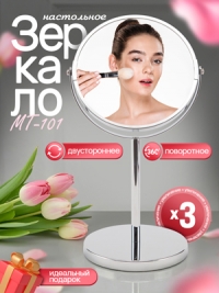 Настольное зеркало – практичный и не- обходимый предмет для каждой женщины. Дизайном предусмотрено вращающееся зер- кальное полотно, которое можно установить под удобным углом. Для наиболее точного нанесения макияжа зеркало оснащено LED-подсветкой, а обратная сторона выполнена с эффектом увеличения. Выглядит зеркало стильно и современно, оно станет прекрас- ным дополнением вашего туалетного сто- лика.