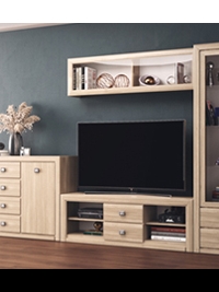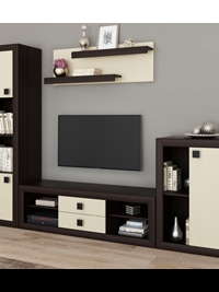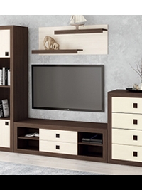 Несмотря на свою компактность, стенка способна вместить большое количество самых разнообразных вещей. Тут есть удобный шкаф и комод для хранения посуды, книг или постельного белья. Большая тумба позволит разместить практически любой современный ЖК или плазменный телевизор. Над ней две открытые полки для сувениров, фоторамок и других предметов декора. Внизу располагаются отделения под видео- и аудиоаппаратуру. А для всяких мелочей предусмотрены два ящичка.