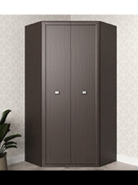 Шкаф с распашной системой открывания имеет угловую конструкцию. Он вмести-